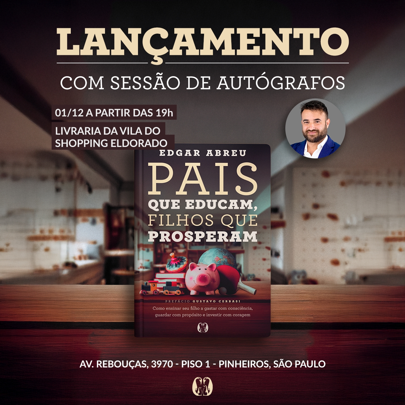Em tempos de inflação, boletos e crianças cercadas por estímulos de consumo desde cedo, a pergunta ecoa nas famílias brasileiras: como preparar os filhos para lidar com o dinheiro de forma saudável? É exatamente essa a proposta de “Pais que Educam, Filhos que Prosperam”, novo livro do educador financeiro Edgar Abreu, que será lançado em São Paulo no dia 1º de dezembro, na Livraria da Vila do Shopping Eldorado.